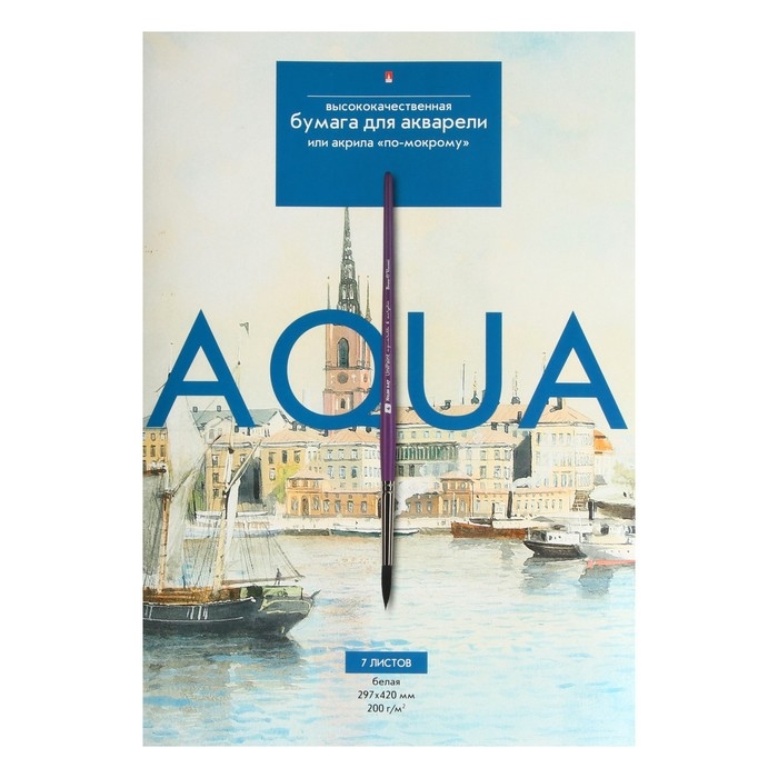 Бумага для акварели А3, 7 листов "Классика", блок 200 г/м2, МИКС