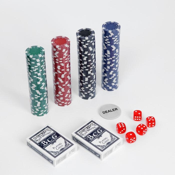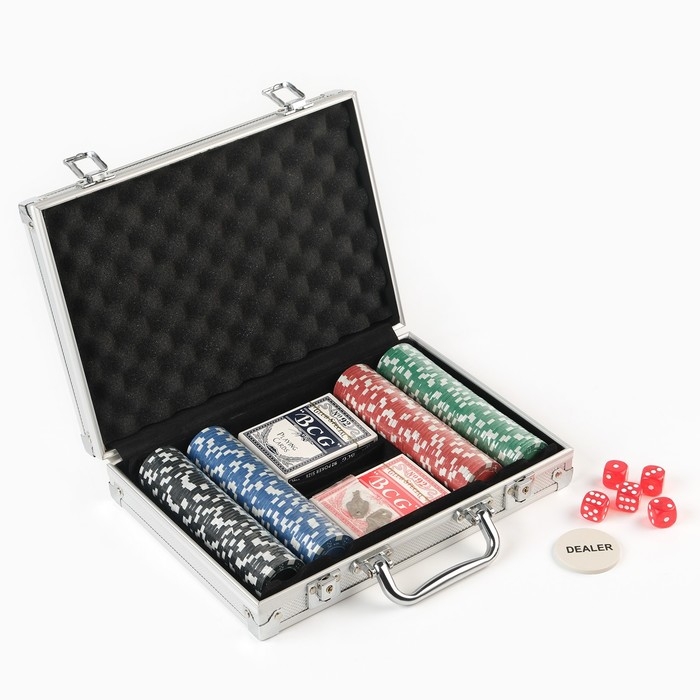 Покер в металлическом кейсе (карты 2 колоды,фишки 200 шт с/номиналом,5 кубиков), 20.5 х 29 см