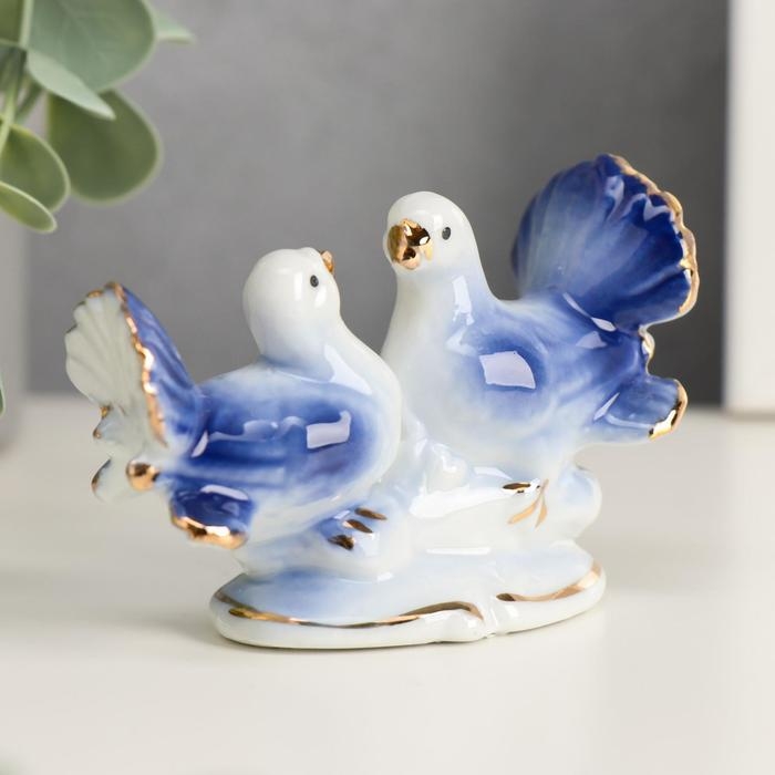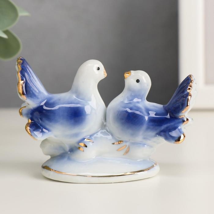 Сувенир под фарфор "2 голубка" синие 5,5х8 см