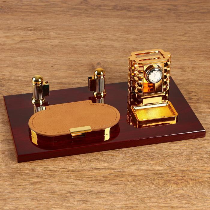 Компактный настольный набор поможет избежать хаоса на рабочем месте. Храните в нём канцелярские принадлежности или другие мелочи, чтобы правильно организовать пространство. К тому же изделие имеет минималистичный дизайн и выполнено под дерево, поэтому оно украсит собой любое место как декоративный элемент.