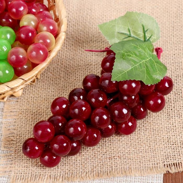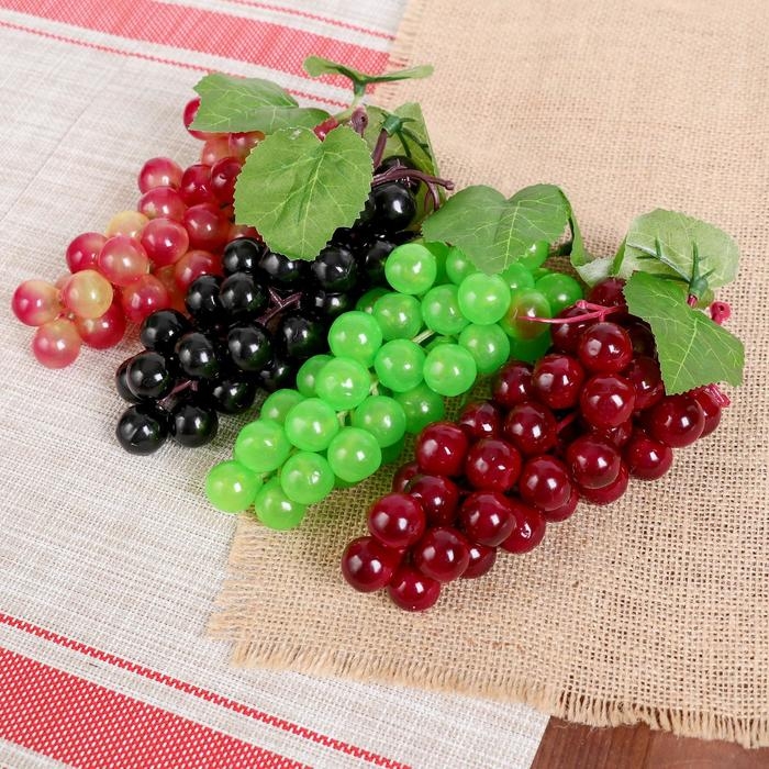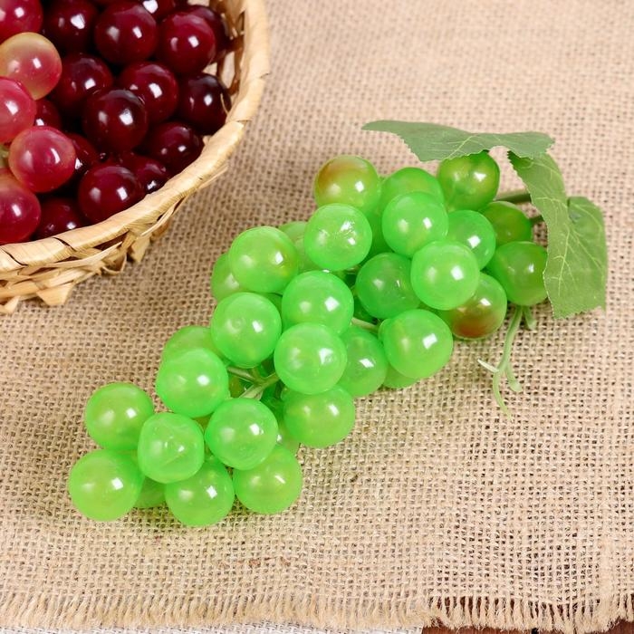 Аппетитные плоды выглядят совсем как настоящие, их так и хочется съесть. Муляж "Виноград глянец" 45 ягод 18 см, микс станет отличным дополнением к фруктово-овощной композиции, которая украсит стол, витрину или любую другую поверхность.