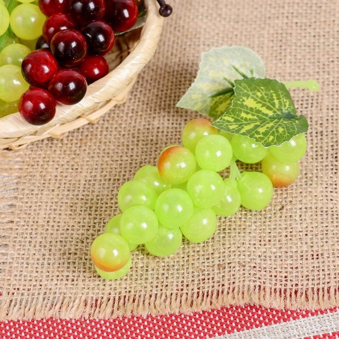 Аппетитные плоды выглядят совсем как настоящие, их так и хочется съесть. Муляж "Виноград" глянец, 22 ягоды 12 см, микс станет отличным дополнением к фруктово-овощной композиции, которая украсит стол, витрину или любую другую поверхность.