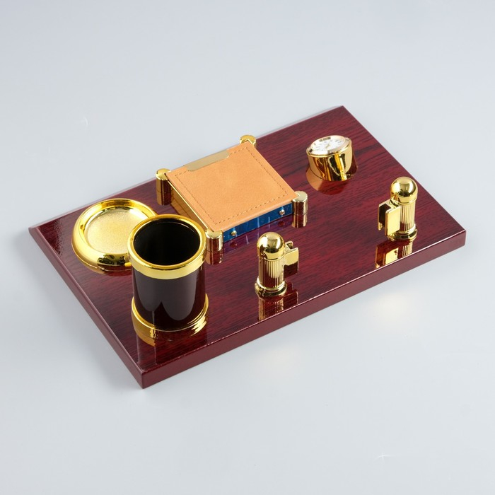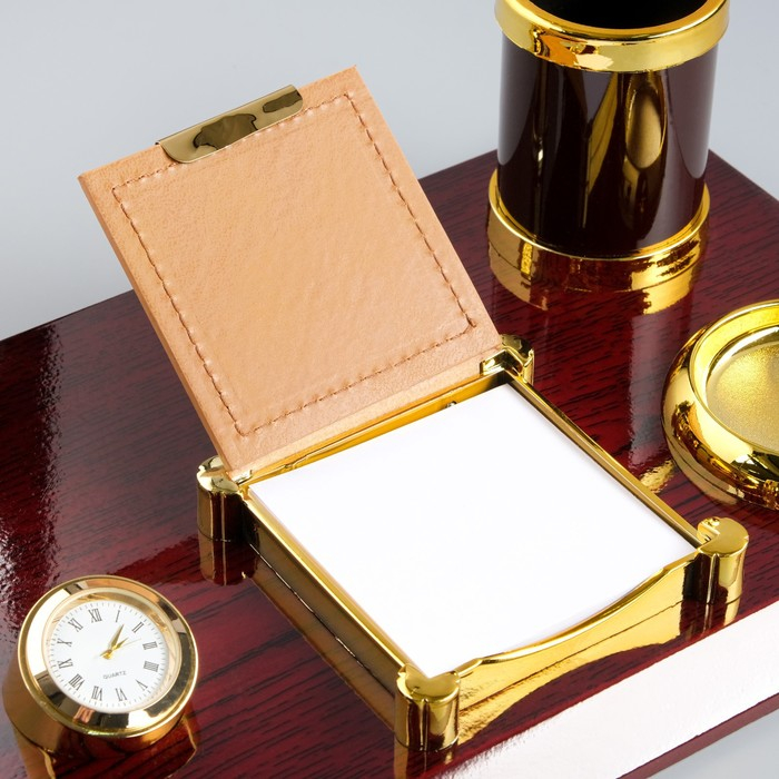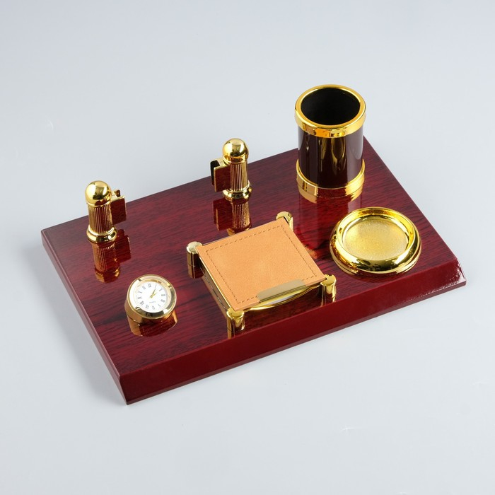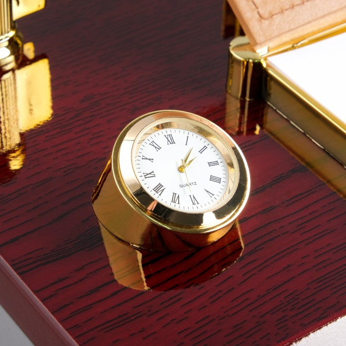 Набор настольный 5в1 с визитницей и часами, красное дерево