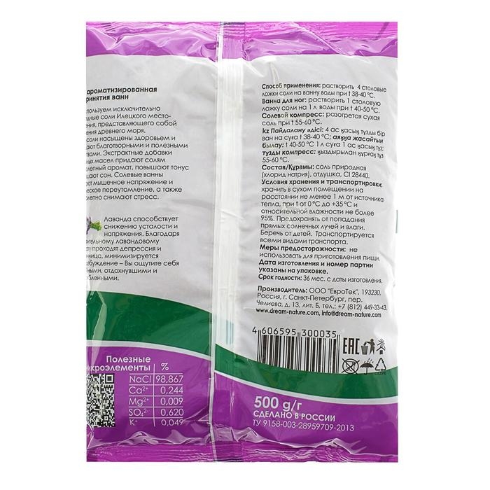 Cоль для ванн природная Dream Nature лаванда, 500 г