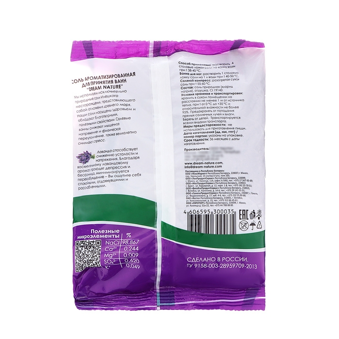 Соль для ванн природная Dream Nature лаванда — это ваш секрет к идеальному релаксу и заботе о себе. Превратите каждый вечер в момент полного умиротворения и наслаждения с этим уникальным продуктом.