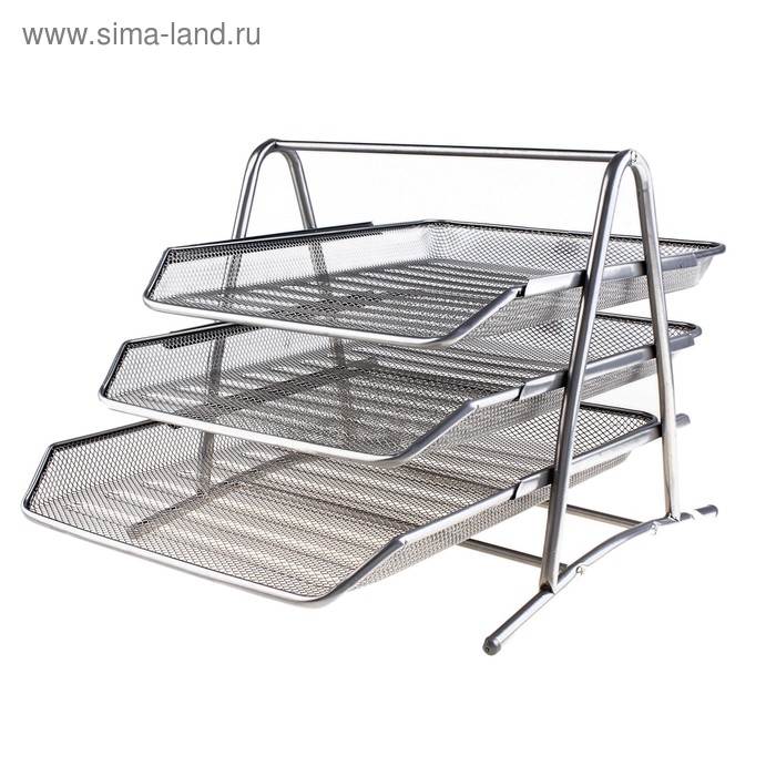 Лоток для бумаг горизонтальный, 3 отделения, серая сетка
