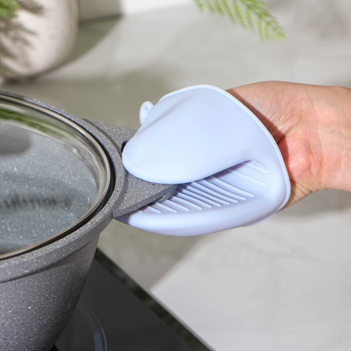 Рукавица для горячего Доляна «Профи», силикон, 22×19 см, цвет голубой