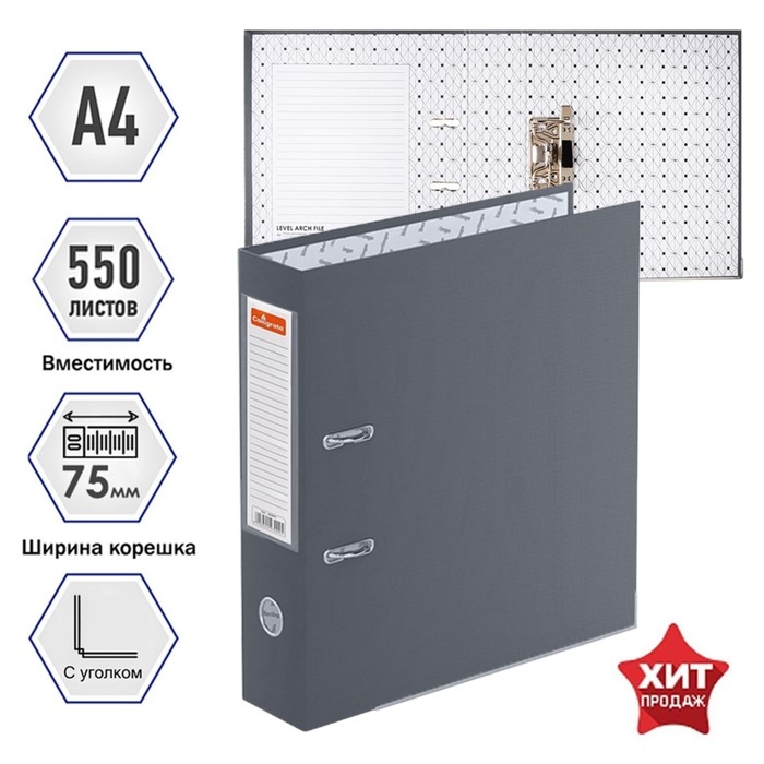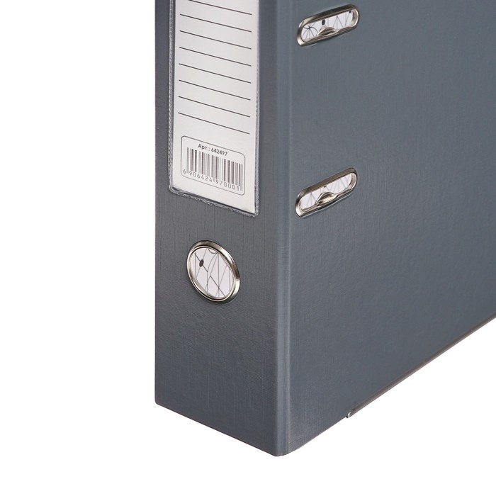 Папка-регистратор А4, 75 мм, Calligrata, ПВХ, металлическая окантовка, карман на корешок, собранная, серая