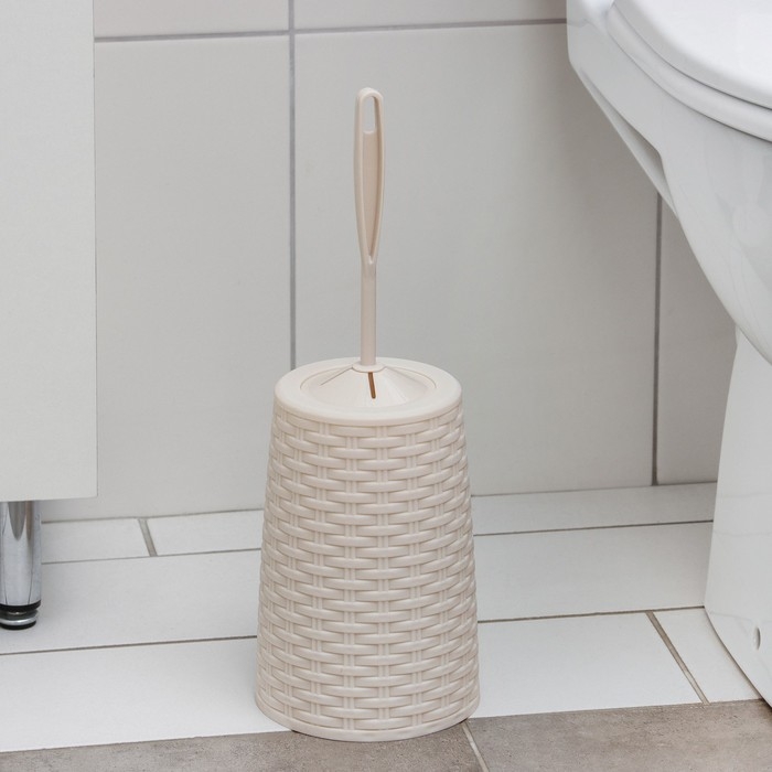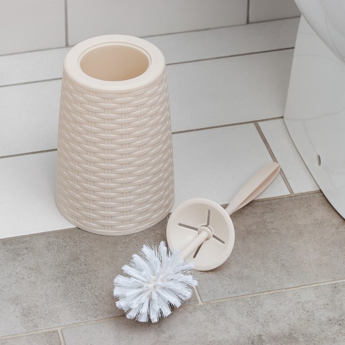 Ёршик для унитаза с подставкой «Плетёнка», 13,5×13,5×38,5 см, цвет слоновая кость
