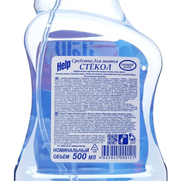Средство для мытья стёкол и зеркал Help, свежий озон, 500 мл