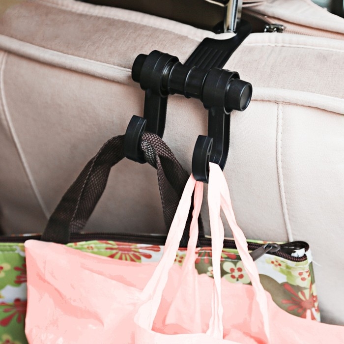 Вешалка-крючок на подголовник, два крючка, пластик, чёрный
