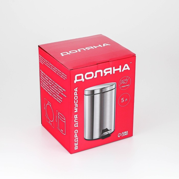 Ведро мусорное с педалью Доляна, 5 л, нержавеющая сталь, цвет хромированный