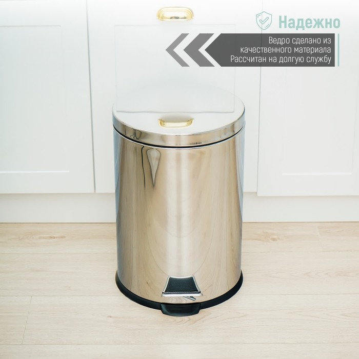 Ведро с педалью Доляна, 12 л, нержавеющая сталь
