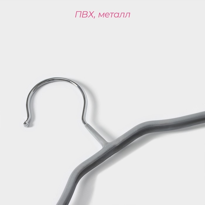 Плечики - вешалка для одежды Доляна, 44×20 см, широкие плечики, антискользящее покрытие, цвет серый
