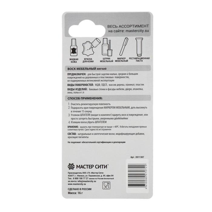 Воск мебельный, цвет: венге блистер 7,5 гр предназначен для заделки сколов, царапин, трещин, и вмятин на деревянных и ламинированных поверхностях, несущих малые физические и химические нагрузки (корпусная мебель, двери, МДФ-панели и др.), для обеспечения влагостойкости поврежденного участка.