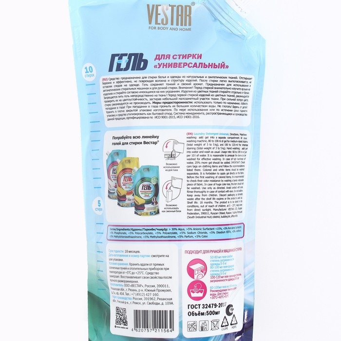 Жидкое средство для стирки "Вестар", гель, универсальное, 500 мл