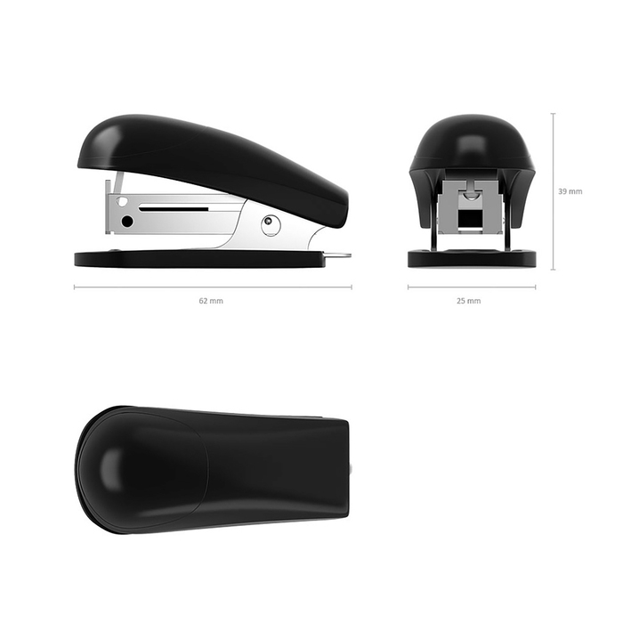 Мини-степлер со встроенным антистеплером изготовлен из ударопрочного пластика с высококачественным стальным механизмом.