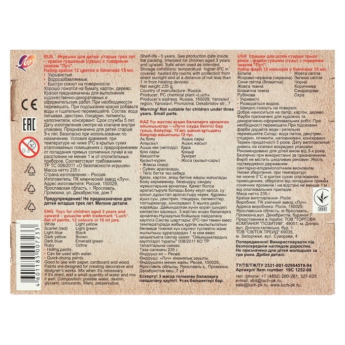 Гуашь 12 цветов х 15 мл ZOO поможет вашему ребёнку создавать красивые яркие картинки, выдумывать невероятные сюжеты и воплощать их в реальность, развивая цветовое восприятие, зрительную память, воображение, мелкую моторику пальцев, ассоциативное, аналитическое и творческое мышление.