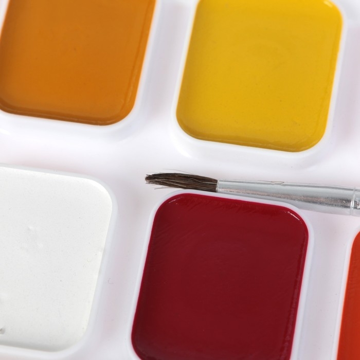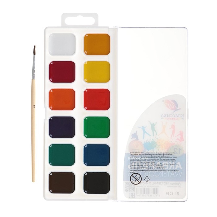 Краски акварельные, в кюветах, с кистью, 12 цветов