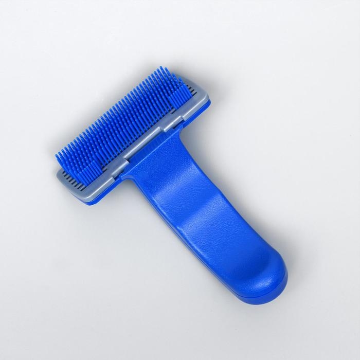 Пуходёрка пластиковая с самоочисткой, 10 х 15 см, синяя