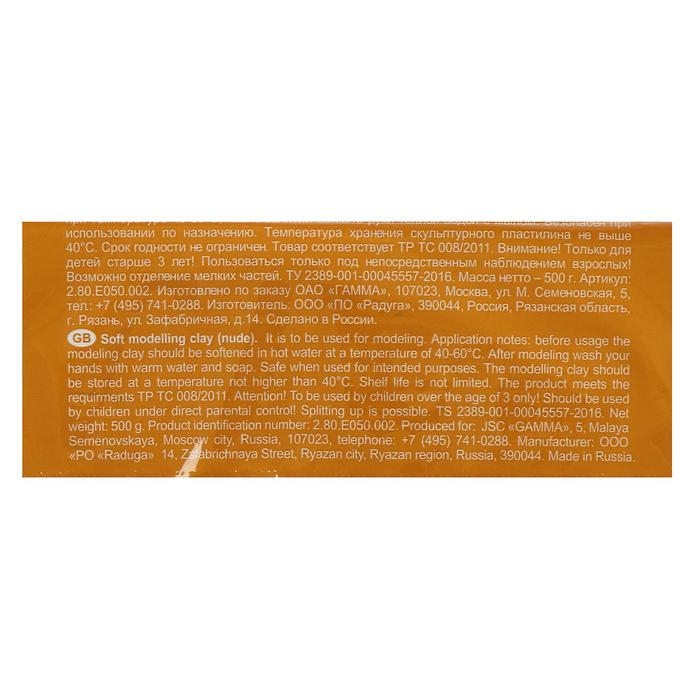 Пластилин скульптурный телесный, мягкий, 500 г, "Гамма"