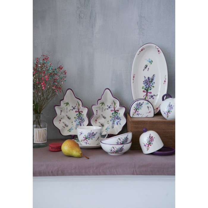 Блюдо сервировочное Доляна «Лаванда», 21×15×4,5 см, цвет белый