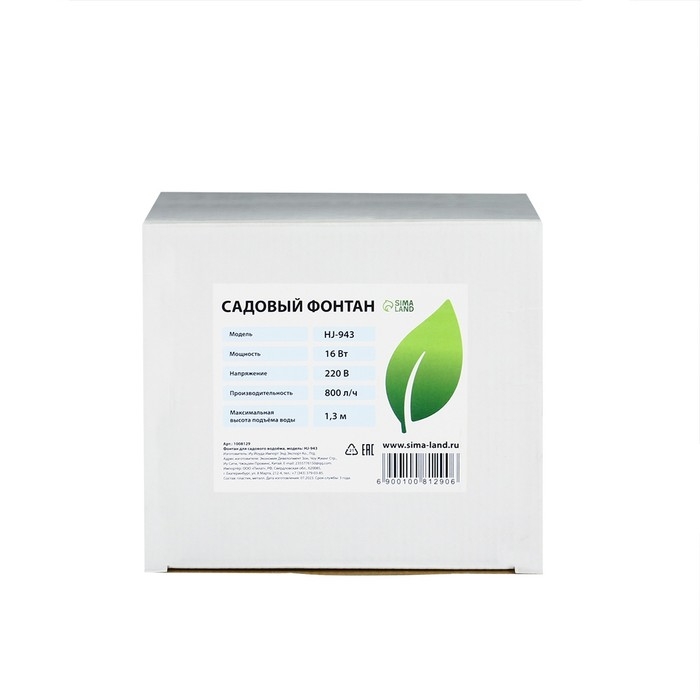 Фонтан садовый HJ-943, 16 Вт, h = 1.3 м, 800 л/ч, шнур 4.9 м