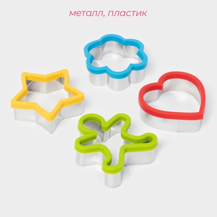 Набор форм для вырезания печенья Доляна «Фигурки», 4 шт, 8×2,5 см, цвет МИКС