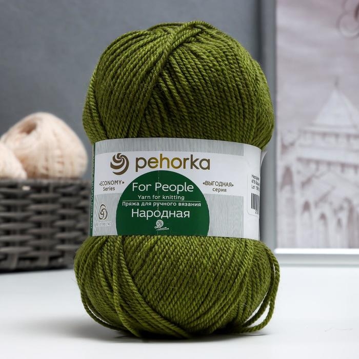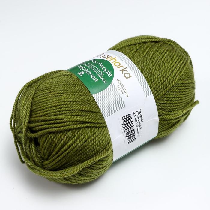 Пряжа "Народная" 30% шерсть, 70% акрил объёмный 220м/100гр (478-Защитный)