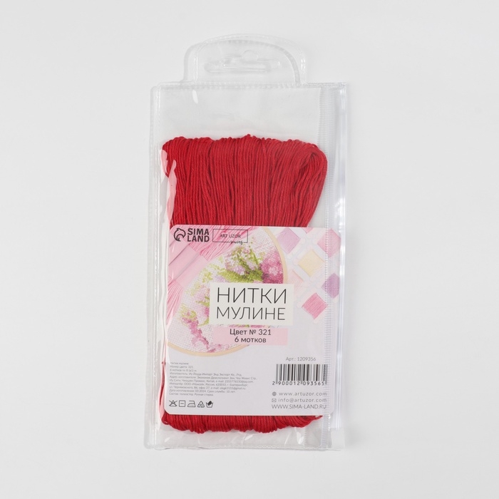 Набор ниток мулине №321, 8 ± 1 м, 6 шт, цвет тёмно-красный