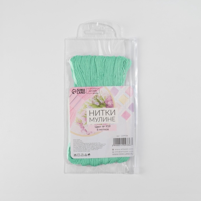 Набор ниток мулине №959, 8 ± 1 м, 6 шт, цвет морская вода