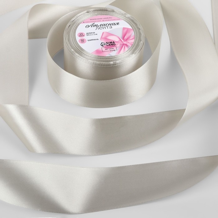 Лента атласная, 50 мм × 23 ± 1 м, цвет светло-серый №179