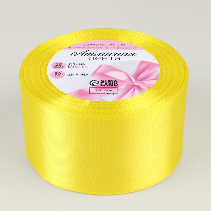 Лента атласная, 50 мм × 23 ± 1 м, цвет жёлтый №15