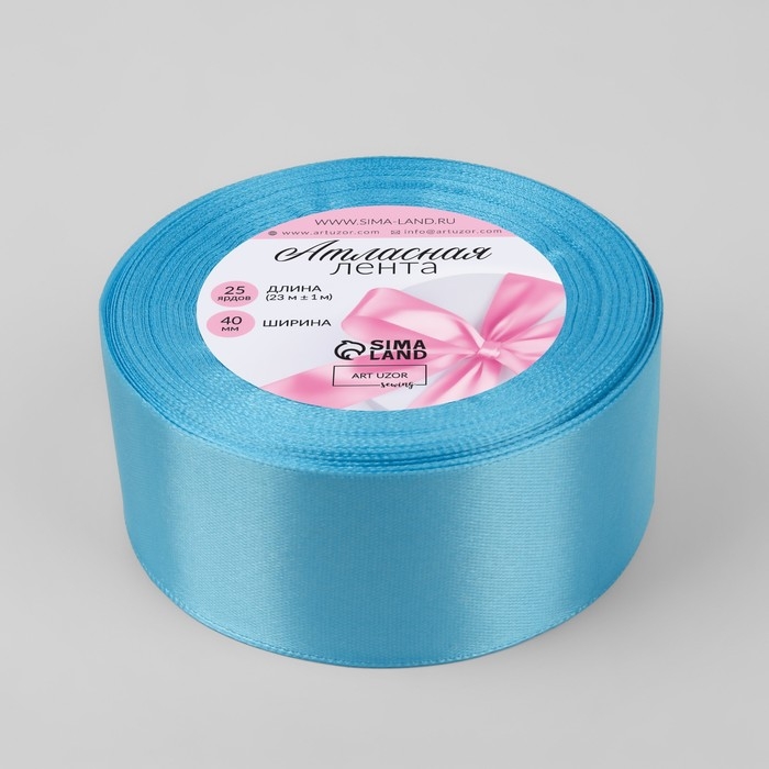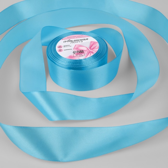 Лента атласная, 40 мм × 23 ± 1 м, цвет ярко-голубой №20