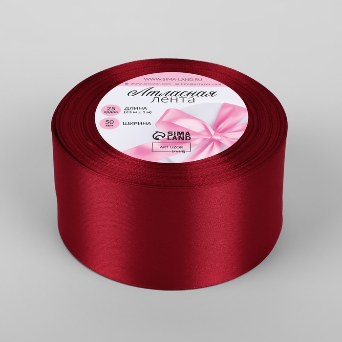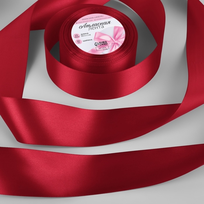 Лента атласная, 50 мм × 23 ± 1 м, цвет глубокий красный №33