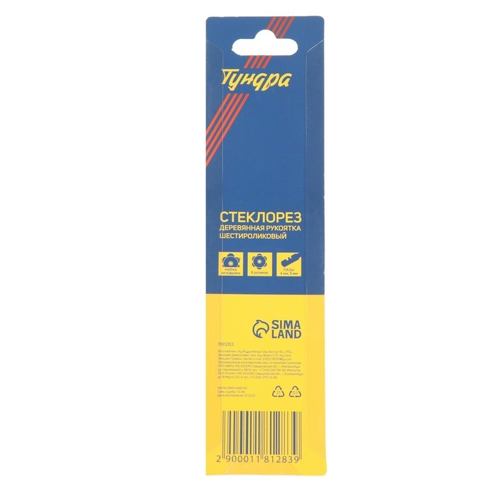 Стеклорез ТУНДРА, шестироликовый, деревянная рукоятка