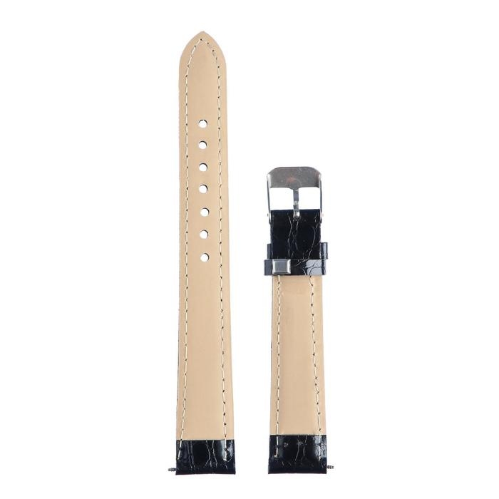 Ремешок для часов 16 мм, лакированная экокожа, 19 см, чёрный