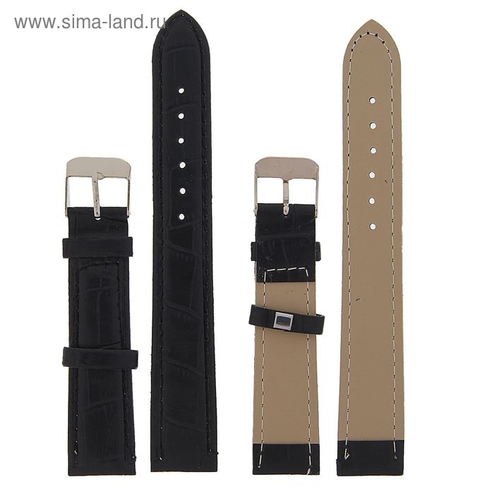 Ремешок для часов, мужской, 18 мм, запряжник 75 мм, горт 115 мм, натуральная кожа, чёрный