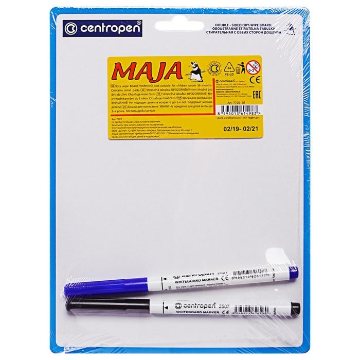 Доска маркерная A5 двусторонняя: без рисунка/линейка Centropen маркер 2 штуки 7729/1