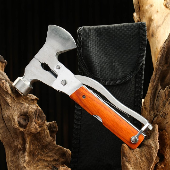 Мультитул 8в1 в чехле, рукоять дерево(топор, молоток, отвертки , ножи)