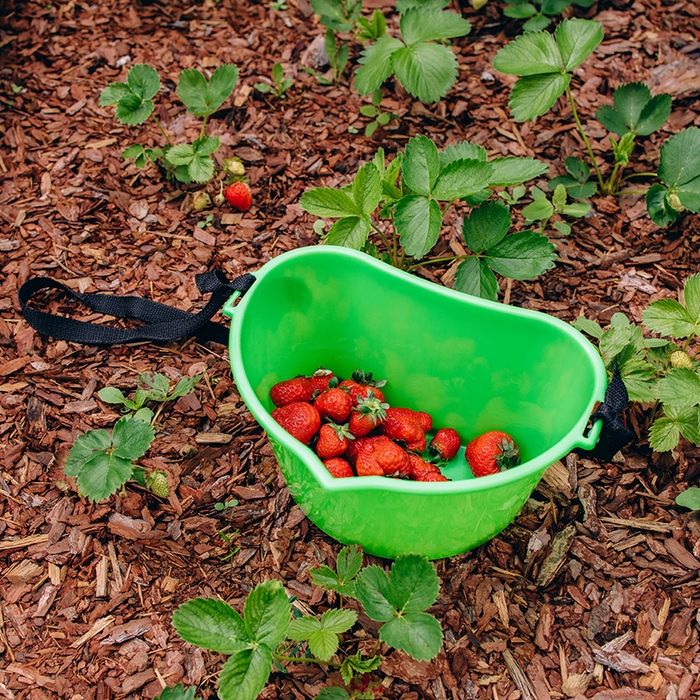 Для сбора ягод используйте специальную ёмкость с ремнём. Вы можете надеть её на шею, поэтому во время сбора ягод ваши руки останутся свободными.