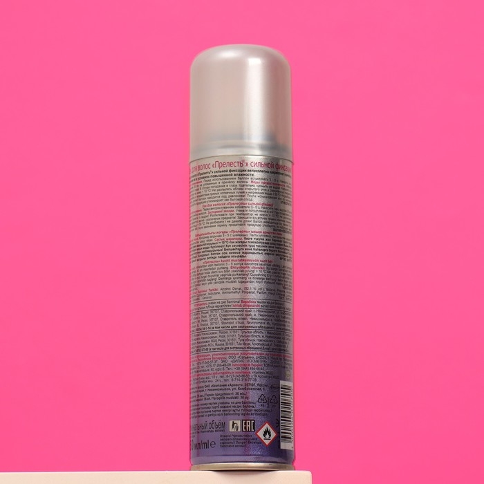 Прелесть Лак для волос Сильной Фиксации 160мл. Сильная фиксация. - Разработан ведущими косметологами специально для женщин с европейским типом волос на основе российского климата. - Отлично фиксирует прическу, сохраняя ее в условиях повышенной влажности, не склеивая волосы. - Особенно рекомендуется для фиксации тонких волос и сложных причесок. Имеет легкий цветочный аромат.