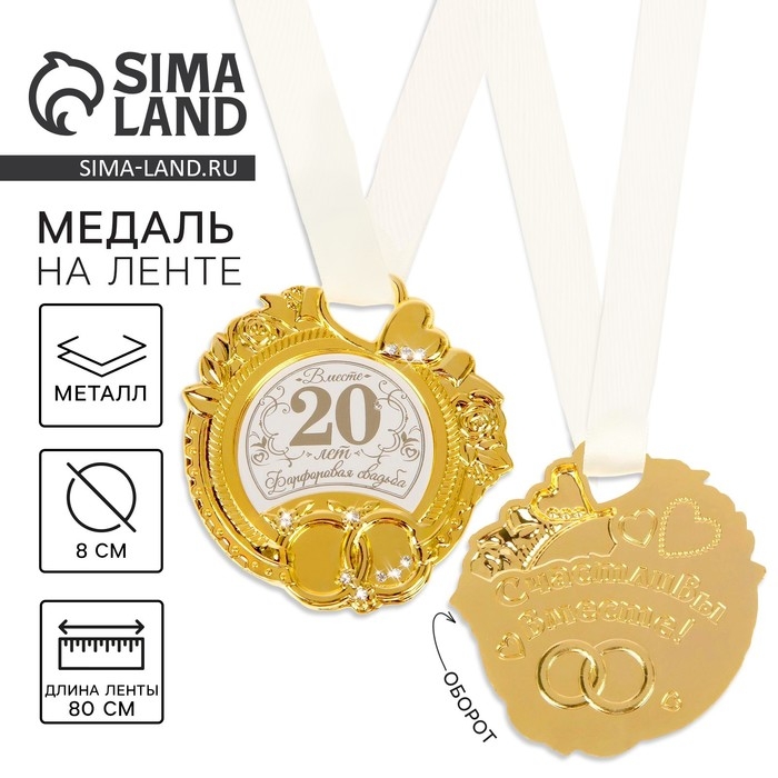 Медаль свадебная на открытке «Фарфоровая свадьба», 8,5 х 8 см