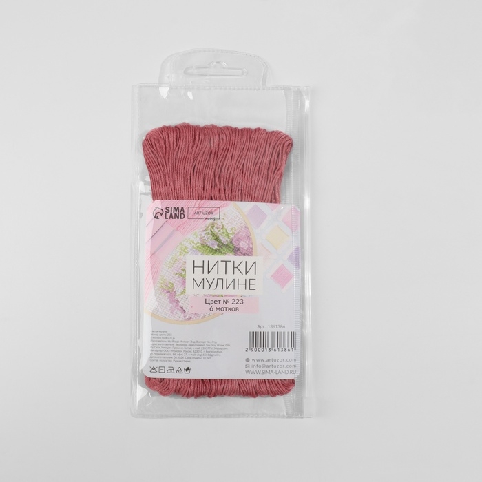 Набор ниток мулине №223, 8 ± 1 м, 6 шт, цвет грязно-розовый