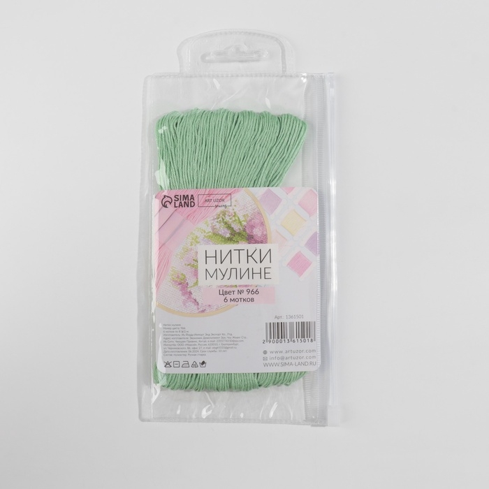 Набор ниток мулине №966, 8 ± 1 м, 6 шт, цвет нежно-зелёный