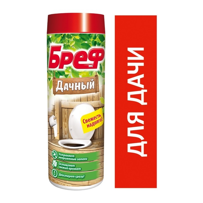 Бреф Дачный – дезодорирующее средство для дачного туалета, которое разработано с учетом отсутствия водопровода и современной канализации на дачном участке. Формула не содержит агрессивных химических компонентов. Бреф Дачный действует в нескольких направлениях:
