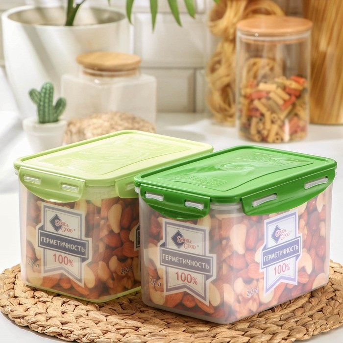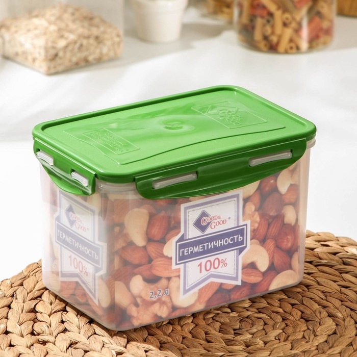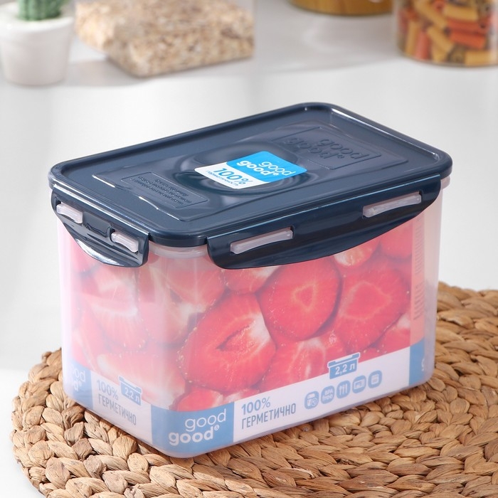 Контейнер пищевых Good & Good, с герметичной крышкой , 2,2 л, цвет прозрачный, крышка МИКС