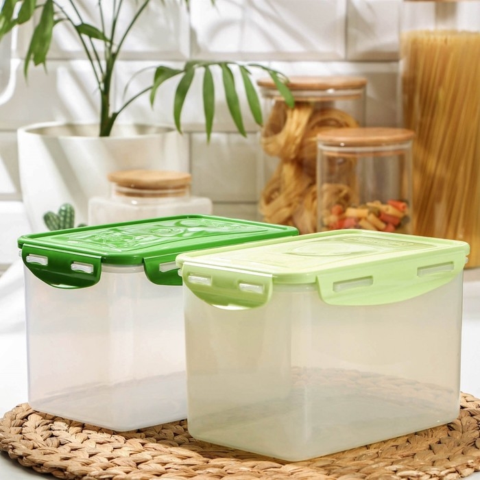 Набор контейнеров пищевых Доляна, 3 шт: 1 л, 18,5×12×7 см, прямоугольные, прозрачные, крышка зелёная