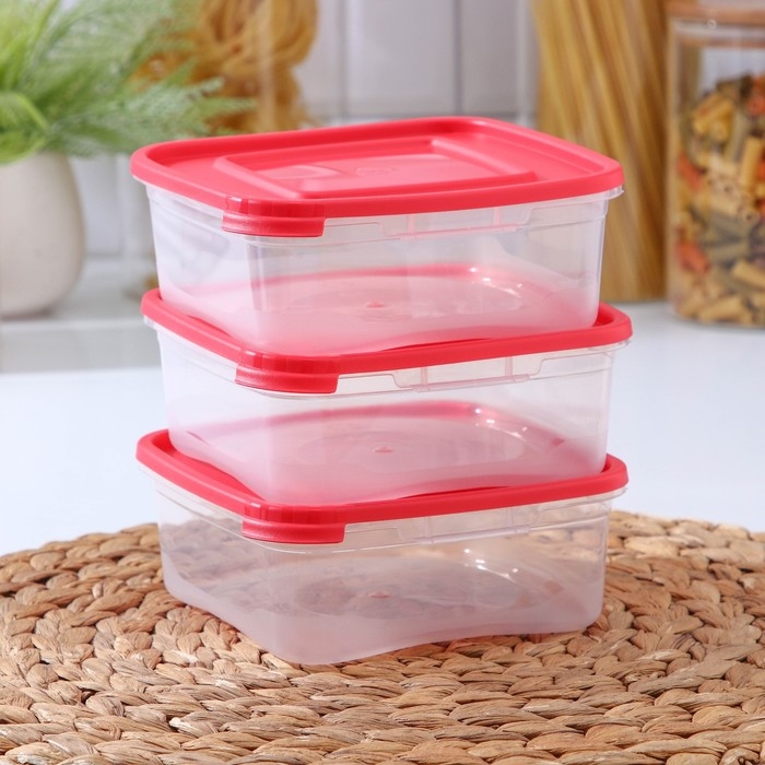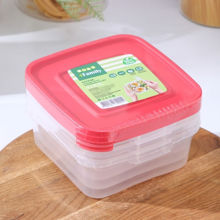 Набор пищевых контейнеров «Каскад», 14×14×5,5 см, 700 мл, 3 шт, прозрачные, крышки микс