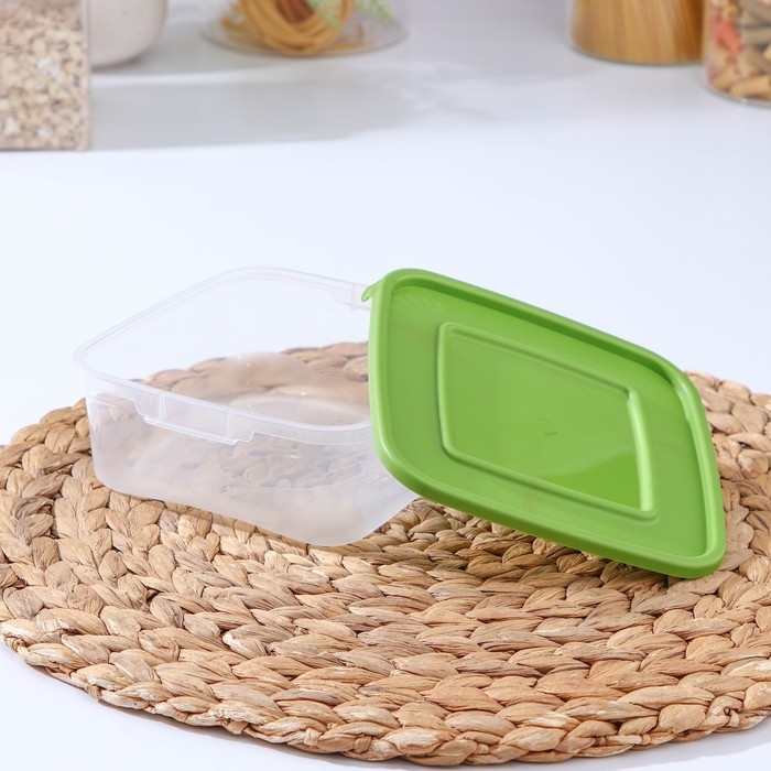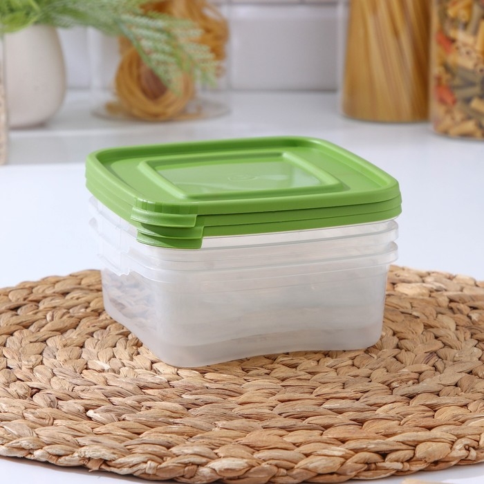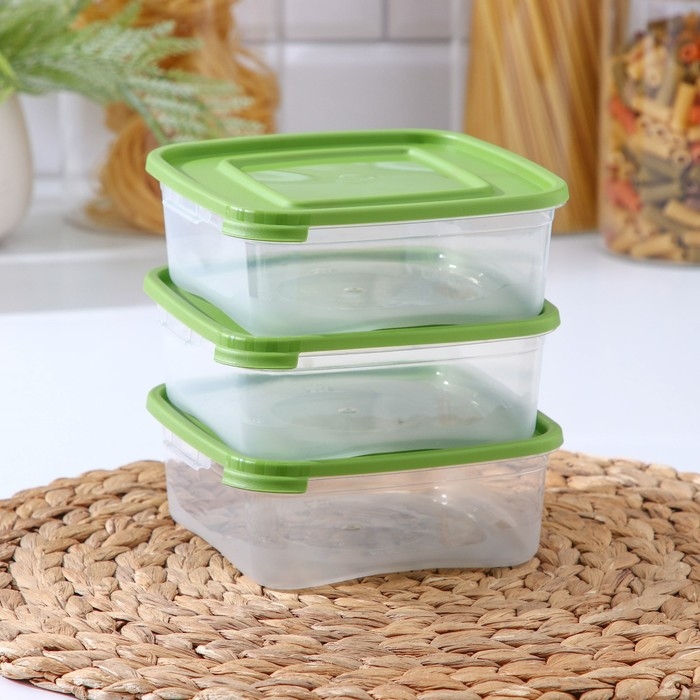 Набор контейнеров пищевых Доляна, 3 шт: 1 л, 18,5×12×7 см, прямоугольные, прозрачные, крышка зелёная